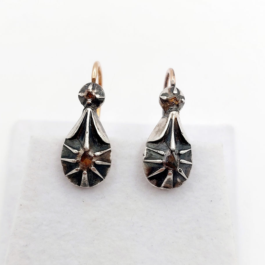 Dormeuses victorienne or rose 18k argent et diamants taille roses (circa 1930)