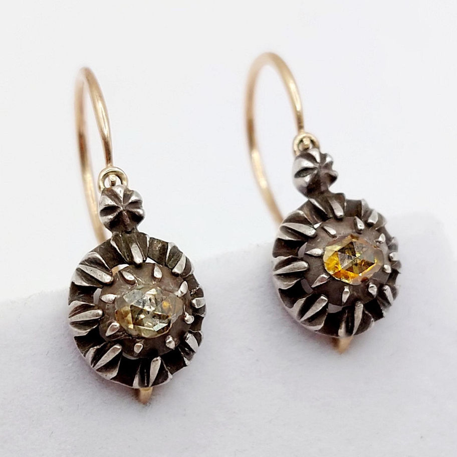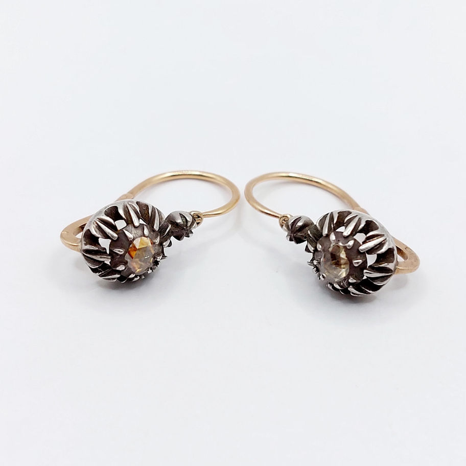 Dormeuses victorienne or rose 18k et argent ornée de diamants taillés en roses sur paillons (circa 1870)