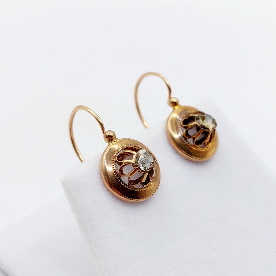 Dormeuses victorienne or rose 18k ornée de diamants taillés en roses en sertis clos sur paillon (circa 1880)