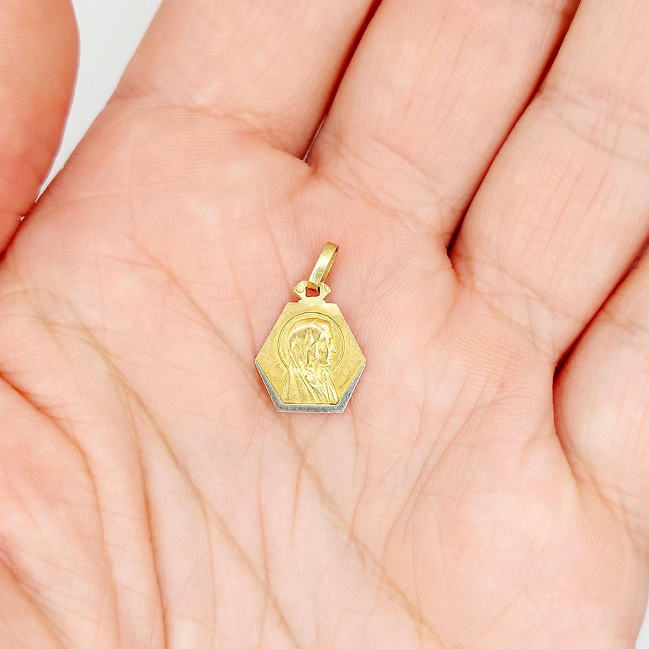 Médaille religieuse art deco or 18k représentant la vierge (circa 1940)