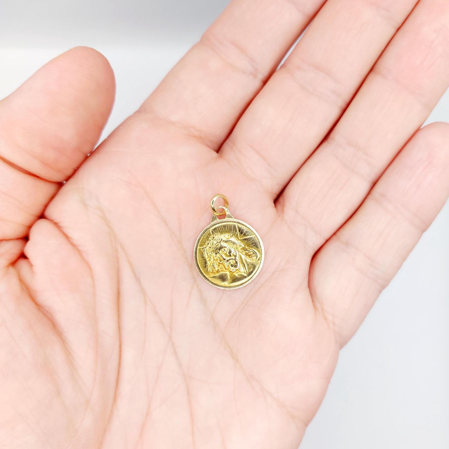 Médaille religieuse vintage or 18k représentant jésus crucifié