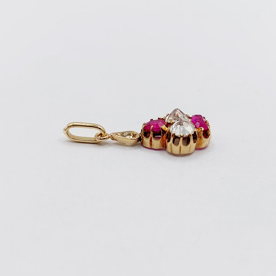 Pendentif antique or 14k diamants taille ancienne et rubis (circa 1920)