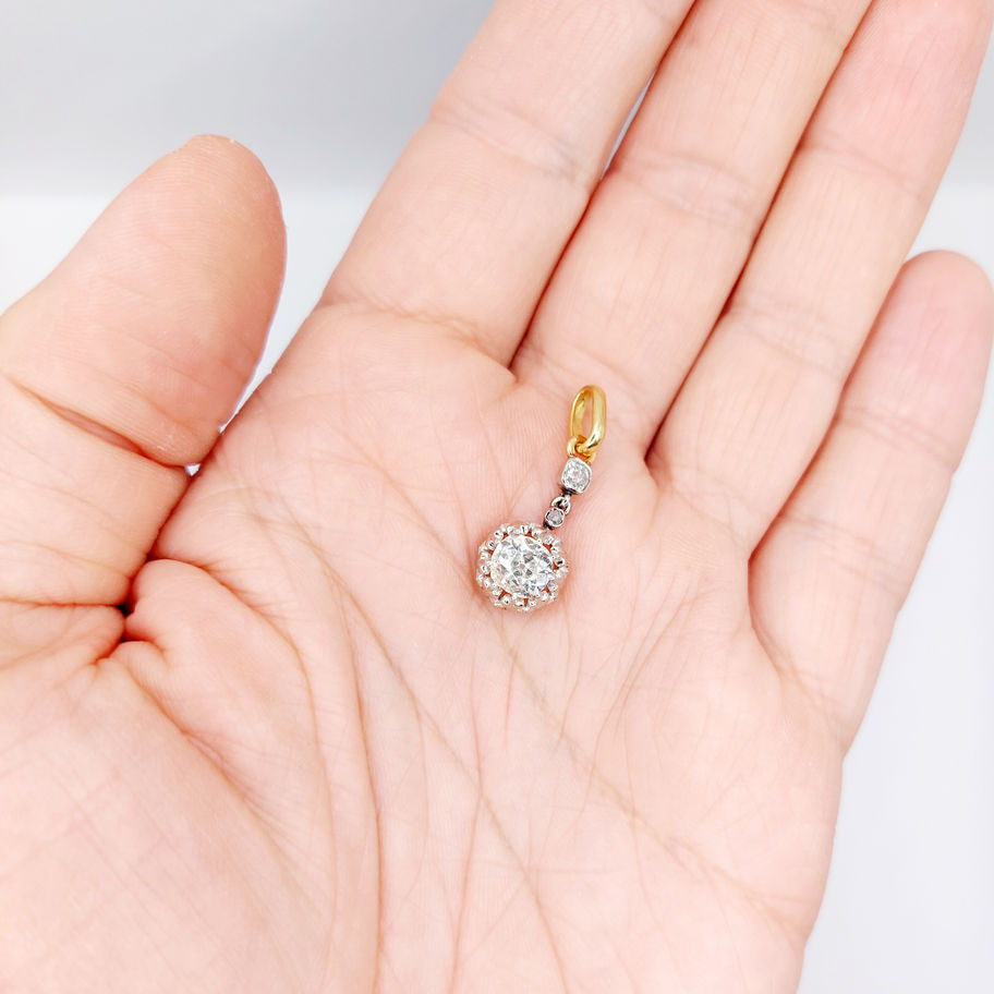 Pendentif antique or 18k diamant taille ancienne 1,00 carat (circa 1900)
