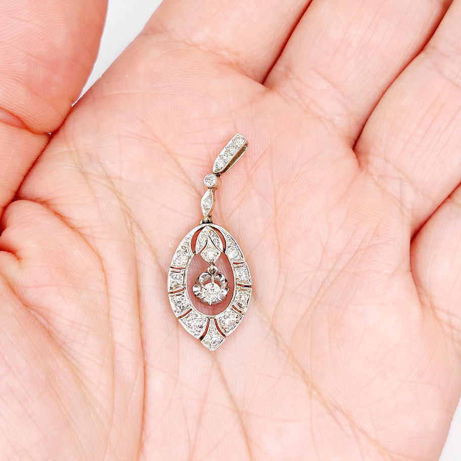 Pendentif art deco or blanc 18k et diamants taille ancienne (circa 1920)