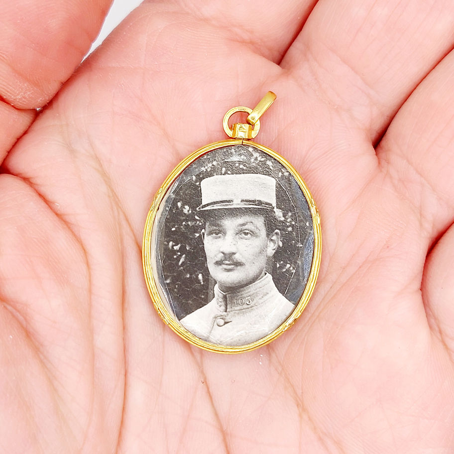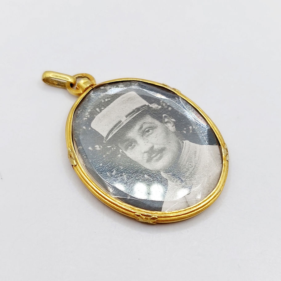 Pendentif porte photo antique or 18k finement décoré (circa 1900) art nouveau