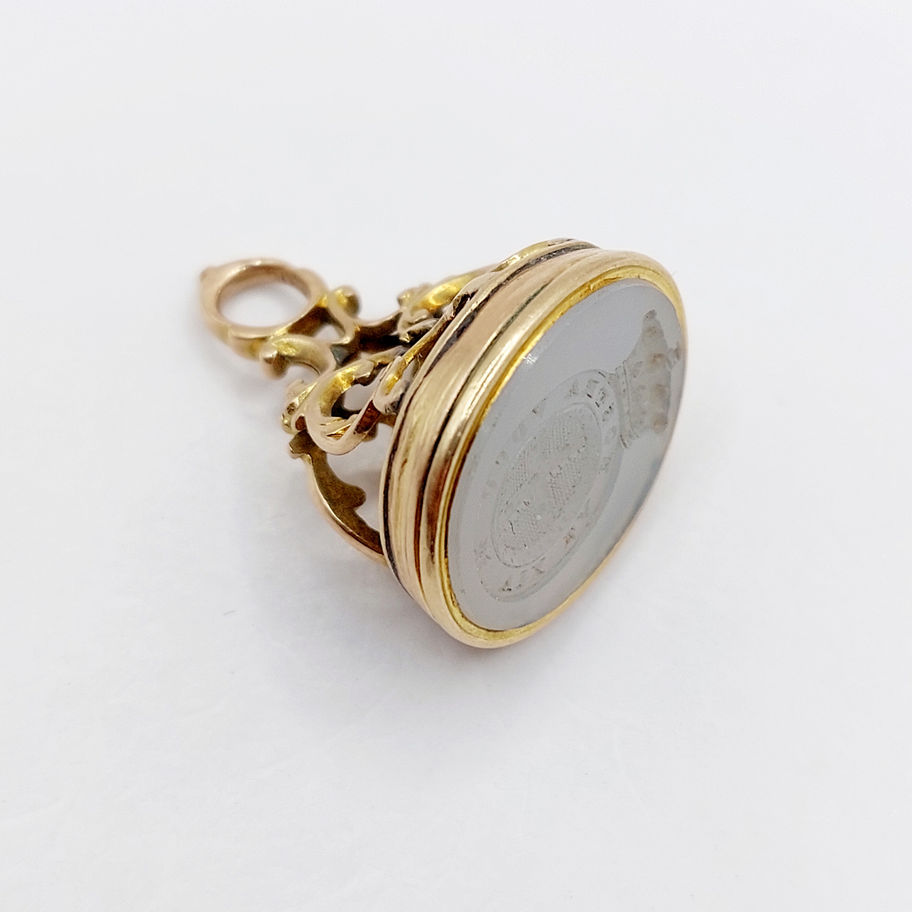 Pendentif sceau antique or 14k orné d'un agate blanche gravé d'une armoirie "VIX EA NOSTRA VOCO" (circa 1880)