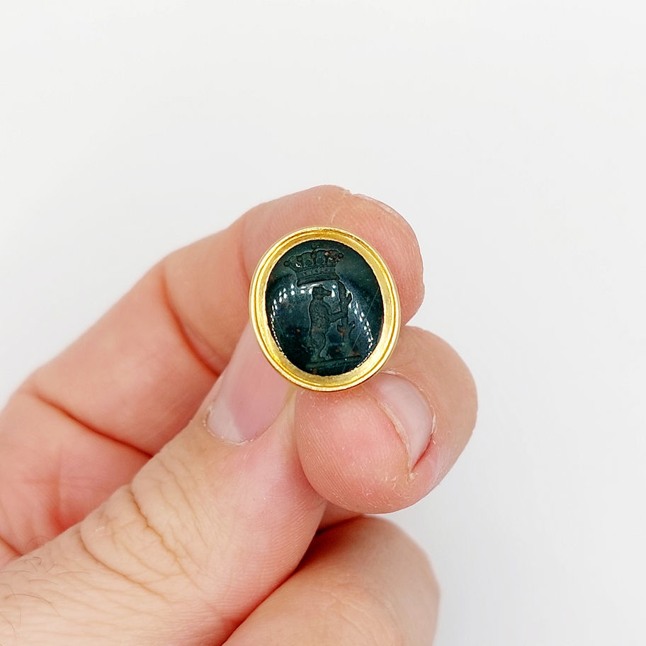 Pendentif sceau antique or 14k orné d'un jaspe sanguin gravé d'une armoirie représentant un ours et une couronne (circa 1880)