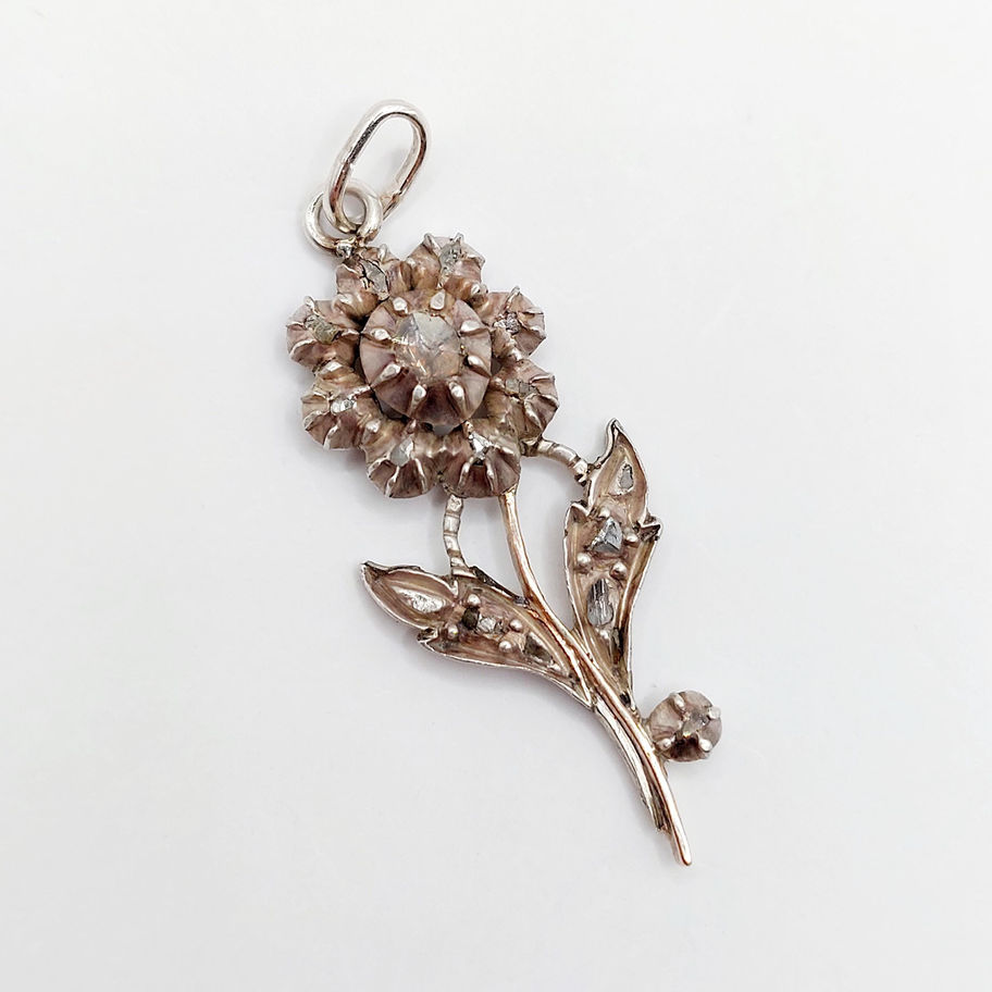 Pendentif victorien Argent fleur diamants années 1850