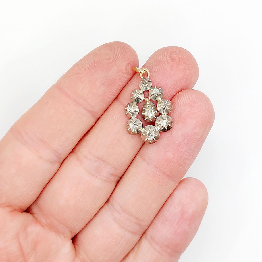 Pendentif victorien Argent or 18k diamants années 1850