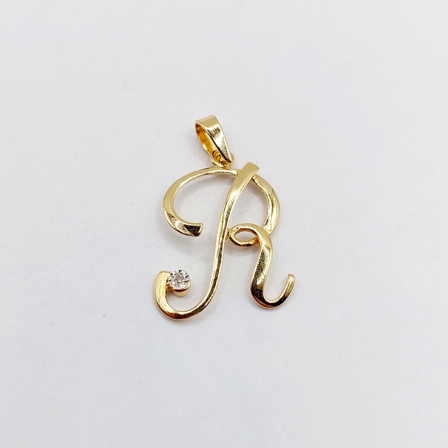 Pendentif vintage or 18k lettre R ornée d'un petit diamant