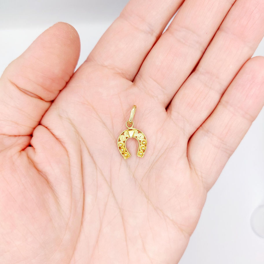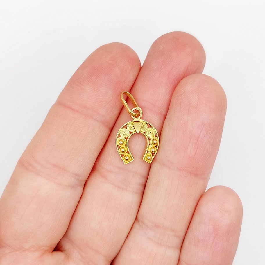 Pendentif vintage or 18k représentant un fer à cheval finement décoré