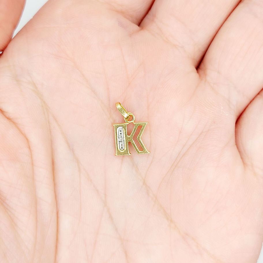Petit Pendentif vintage or 18k lettre K ornée d'un petit diamant