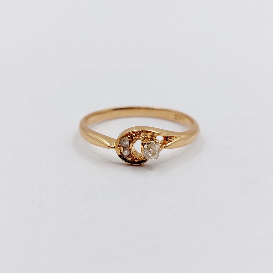 Petite bague antique or rose 18k formant un croissant de lune ornée de diamants taille roses (circa 1920)