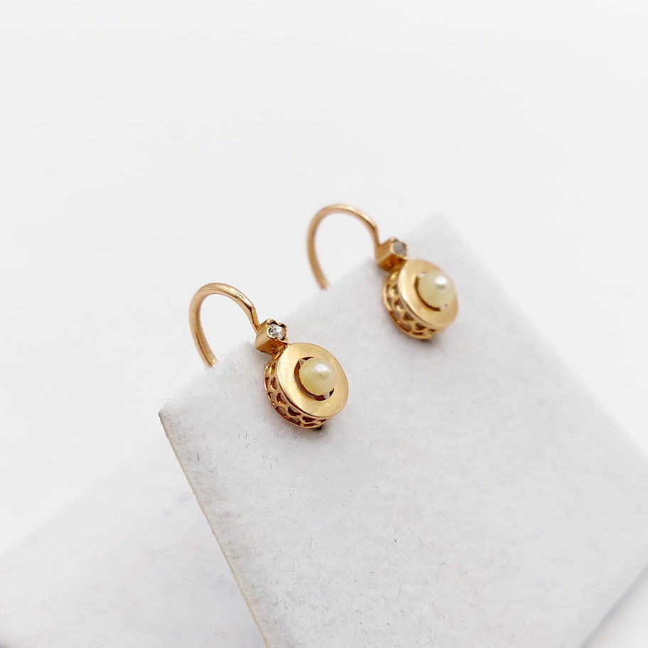 Petite dormeuses antique or rose 18k ornée d'une perle et d'un diamant taille rose (circa 1900)
