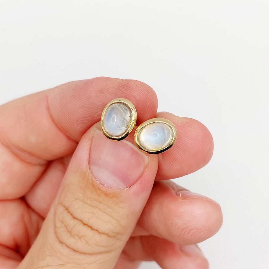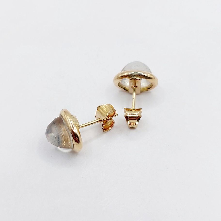 Puces d'oreilles vintage or 18k ornées de cabochons de pierres de lunes